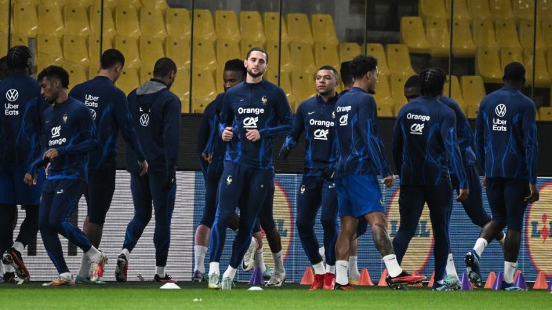 Mike Maignan; Jonathan Clauss, Dayot Upamecano, William Saliba, Theo Hernandez; Adrien Rabiot, Youssouf Fofana; Ousmane Dembele, Antoine Griezmann, Kylian Mbappe; Macrus Thuram.