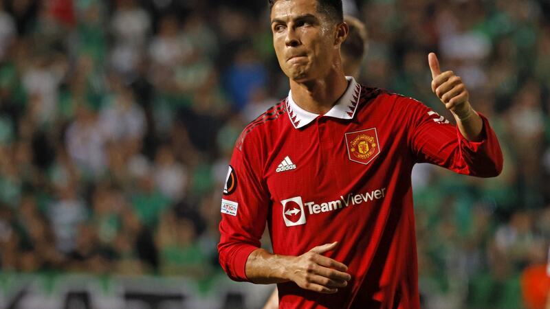Manchester United's Portuguese striker Cristiano Ronaldo reacts at the end of the UEFA Europa League group E football match between Cyprus' Omonia Nicosia and England's Manchester United at GSP stadium in the capital Nicosia on October 6, 2022. (Photo by Khaled DESOUKI / AFP)