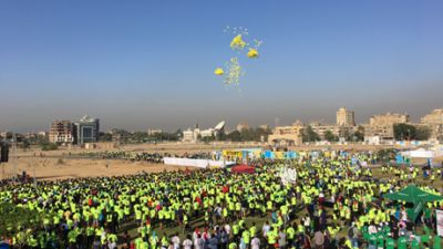 At six o’clock on Friday morning, the neighborhood of Maadi came alive with balloons, fluorescent yellow t-shirts and the sound of drumming, announcing the start of the annual Cairo Runners marathon.